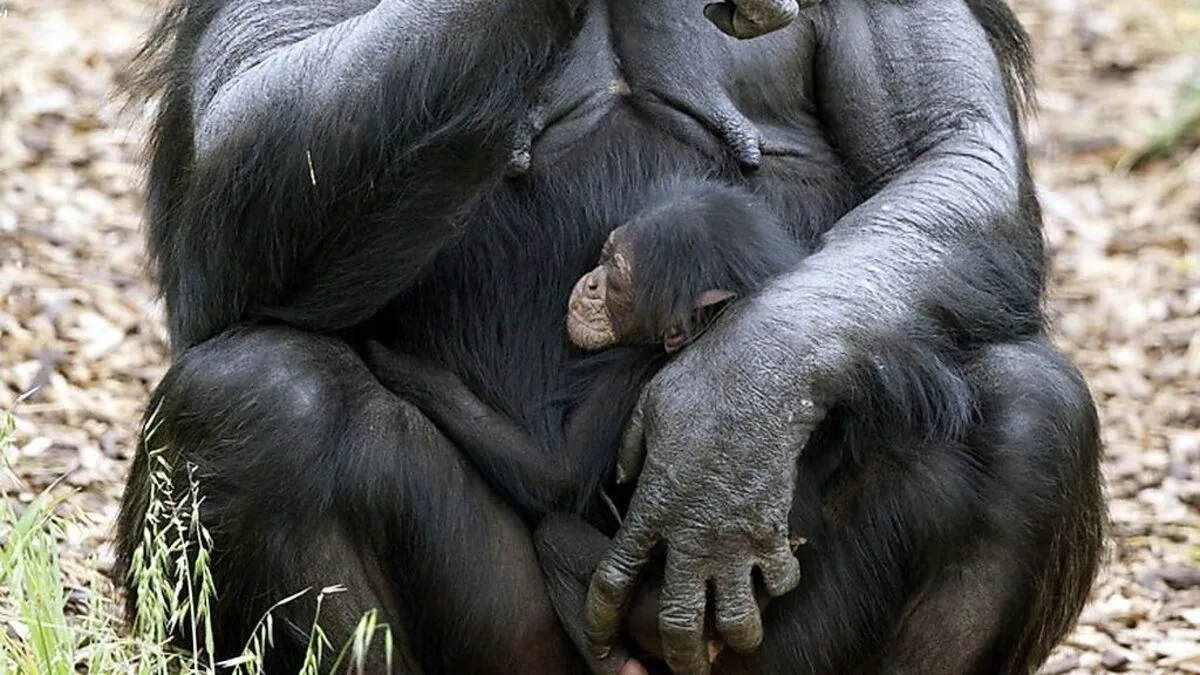 So etwas habe es noch nie gegeben, dass ein schwangeres Schimpansenweibchen so kurz vor ihrer eigenen Niederkunft die Rolle der Ersatzmutter übernimmt, hieß es aus einem australischen Zoo.