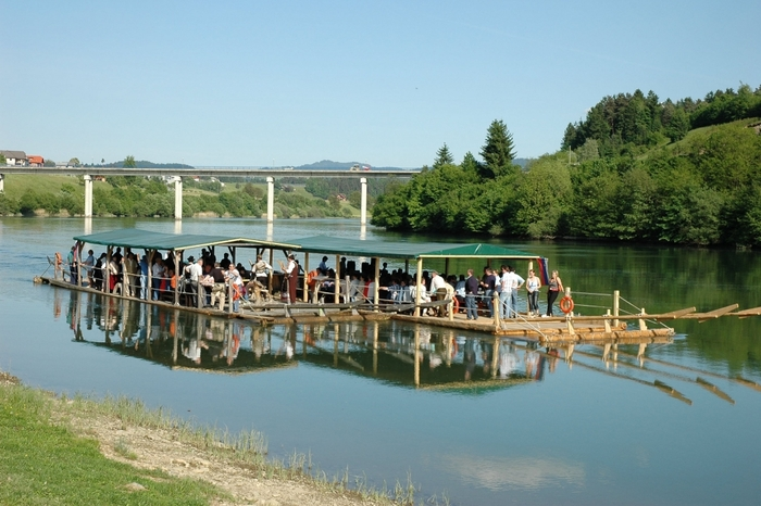 So muss es damals wohl gewesen sein, als sich die Flößer an die Arbeit machten, um sich das Transportfahrzeug für ihr Abenteuer auf der Drau zu bauen. Die Ärmel wurden hochgekrempelt und kräftig angepackt. Das wird es auch heute noch, wovon man sich sofort nach der Ankunft an der Anlegestelle mit eigenen Augen überzeugen kann: Hier wird gezimmert und gebaut wie anno dazumal. Natürlich muss man auch hier der einstigen Tradition treu bleiben. Daher gibt es zur Begrüßung – ganz wie damals – Schnaps, Brot und Salz, gereicht von den Flößerfräuleins. Natürlich muss es dazu auch die passende traditionelle slowenische Musik geben. In Begleitung von Harmonika klängen, kommt ganz von selbst eine hervorragende Stimmung auf. Ist man erst an Bord des Floßes angekommen, fühlt man sich fast schon wie ein richtiger Flößer und hat die Möglichkeit alles aus dem Leben der Helden der Drau zu erfahren. Die Fahrt ist ruhig und sicher sowie für alle Generationen geeignet.