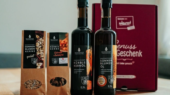 Egal, ob Sie Ihren Lieben eine Freude mit dem zart geräucherten Kärntner Låxn aus der Fischzucht Feld am See machen möchten, den herzhaften Camembert vom Baierlehof schätzen oder die süßen Kürbisknabberkerne vom Bauernhof Tschischej verschenken wollen – die Geschenkpakete aus dem Genussland Kärnten bieten für jeden Geschmack das Richtige. Sie enthalten sorgfältig ausgewählte, hochwertige Produkte, die von Kärntens Bäuerinnen und Bauern mit viel Hingabe und Liebe zur Natur hergestellt werden. Erhältlich sind diese bei vielen Genussland Kärnten Produzenten sowie auch Handelspartnern. Nähere Infos dazu finden Sie auf www.genusslandkaernten.at