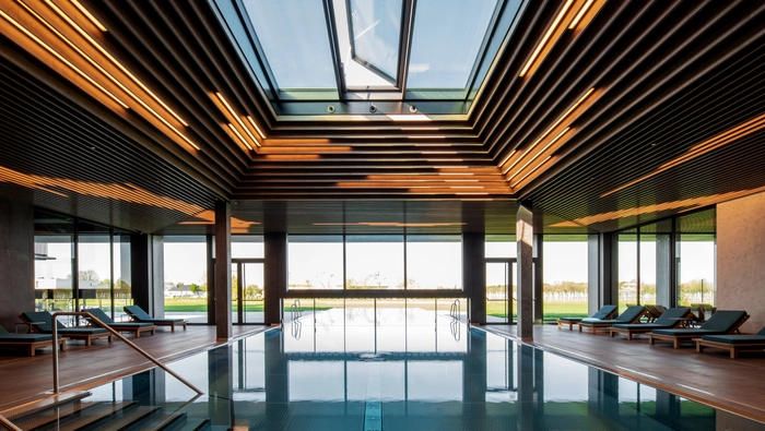 Im weitläufigen Wellness- und SPA-Bereich mit Pool, Sauna und modernem Fitnessraum wird Wohlbefinden großgeschrieben. Massagen und Beauty-Treatments sorgen für tiefgehende Entspannung, während der Außenbereich zum Relaxen inmitten der Natur einlädt.