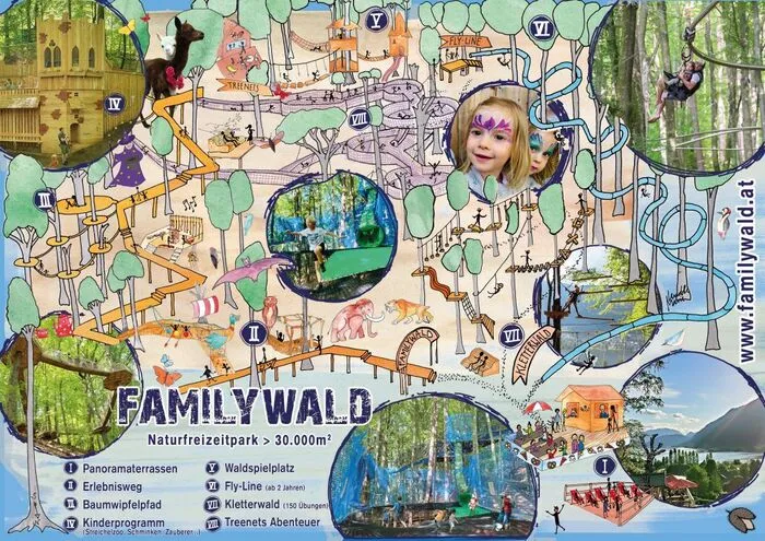 Am selben Gelände befindet sich auch der Kletterwald Ossiacher See, welcher seit der Erweiterung auf mehr als 150 Übungen in vier Schwierigkeitsstufen einer der größten seiner Art in Österreich ist. Ein Streichelzoo, Kinderschminken und Zauberer sorgen während der Hauptzeiten für zusätzliche Magie im Familywald.