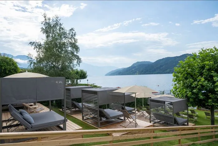 - Exklusiver Moerisch Strand am Millstätter See mit Day Beds, Liegen, Schirmen & Steg