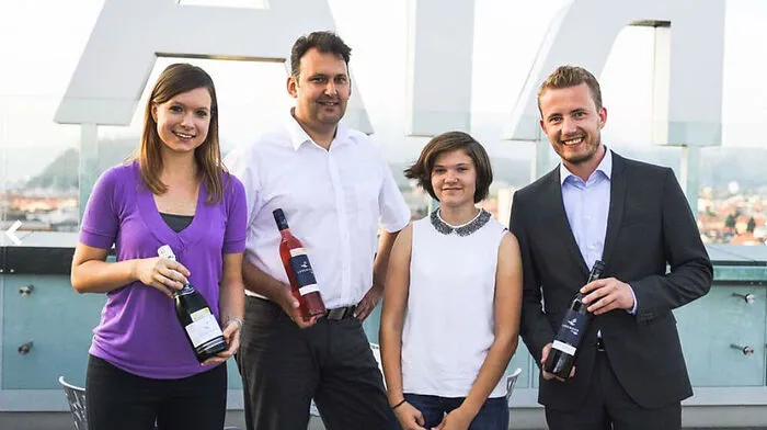 Hoch hinaus: Stefan Langmann stellte seine Top-Weine beim Winzerstammtisch des Kleine Zeitung Shop auf der Dachterrasse des Styria Media Centers vor.