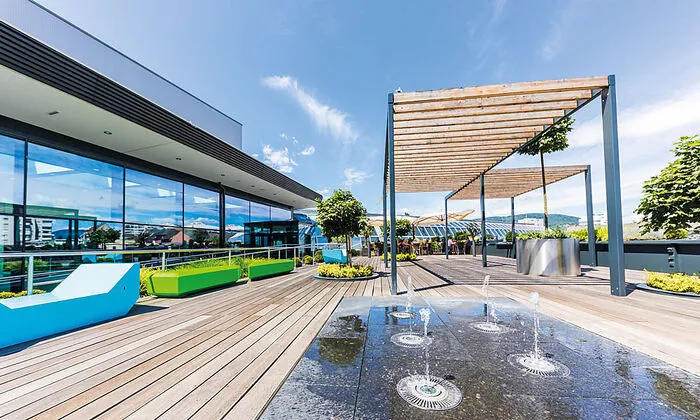 Ein angenehmer Shoppingtag verdient auch einen angenehmen Ausklang – am besten mit einem einzigartigen Blick über Graz: Die Dachterrasse auf dem CITYPARK ermöglicht Gastro- Genuss mit Blick auf das Grazer Wahrzeichen, den Uhrturm. Geöffnet wird die Terrasse wieder, sobald das Wetter es zulässt.