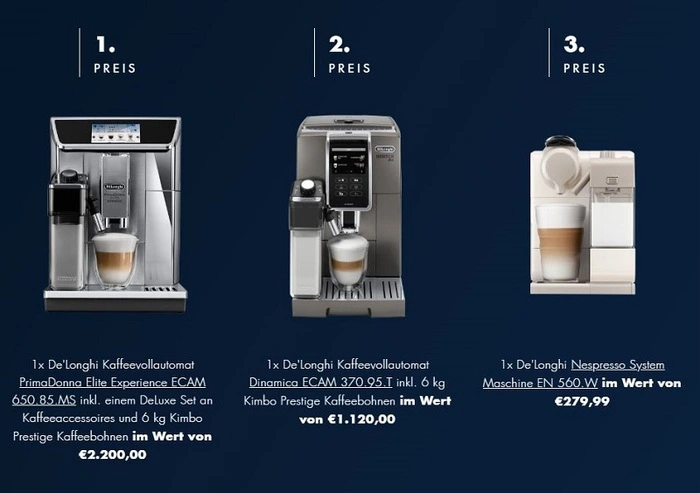 Zeigen Sie uns Ihren perfekten #delonghicoffeemoment. Laden Sie Ihr Foto auf www.delonghicoffeemoments.at hoch, beschreiben Sie kurz, was diesen Augenblick so besonders macht und schon nehmen Sie am Gewinnspiel teil!