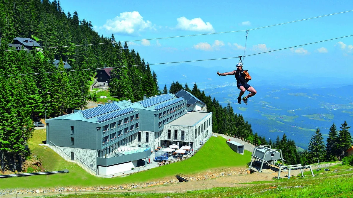 Picknick am Bergsee, Kochkurs am Bauernhof, Kajak-fahren auf wildem Wasser wo soll man nur anfangen, wenn man einen Urlaub im Tal der Oberen Savinja beschreiben möchte? Vielleicht mit einer Gondelfahrt: Im verschlafenen Radegunda steigen Sie in die Seilbahn ein und lassen sich durch tiefgrüne Wälder langsam höher tragen. Der Blick schweift vom immer weiter werdenden Panorama auf den Gipfel des Berges Golte. Wo sich im Winter Skifahrer und Snowboarder auf den Pisten tummeln, warten im Sommer Ruhe und Natur.