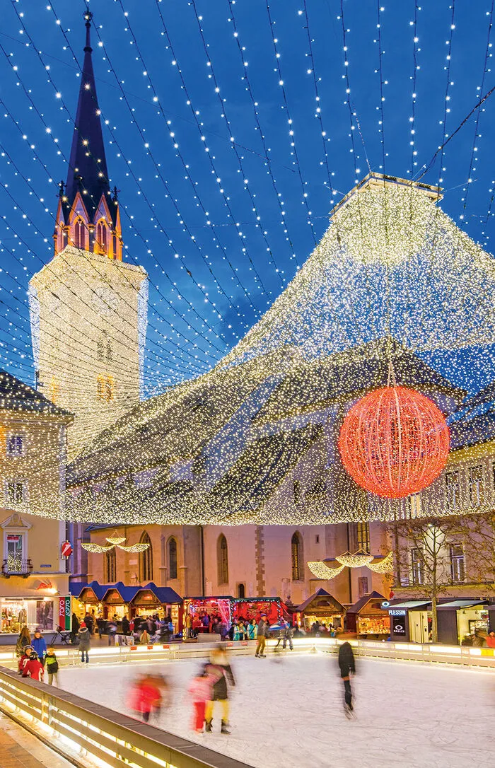 So, ich oute mich jetzt: Ich liebe die Weihnachtsgeschichten von Astrid Lindgren. Sie erzählen von einer magischen Zeit mit viel Schnee, selbstgebackenem Lebkuchen und schönen Familientraditionen. Allein wenn ich daran denke, fühle ich mich wieder ein bisschen wie ein Kind. Kein Wunder, dass auch wir versuchen, diese Magie gerade zur Weihnachtszeit ins Hier und Jetzt zu holen. Dazu gehört auch der 24. Dezember, vor 12. Unser Plan? Wir gehen Schlittschuhlaufen! Aber nicht irgendwohin, sondern auf Kärntens schönstem Eislaufplatz, mitten in Villach. Unter einem Sternenbaldachin kann man hier seine Bahnen ziehen und dabei alle Hektik vergessen. Weil wir immer früh dran sind, haben wir den Platz fast ganz für uns allein.