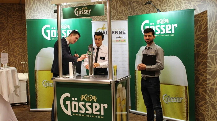 Die angehenden Restaurantfachfrauen und -männer hatten im vergangenen Jahr bei einem exklusiven Ausflug in die Brauerei Göss die Chance, Fachwissen und -können von den Experten der Brau Union Österreich zu lernen. Frei nach dem Motto „Nur Übung macht den Zapfmeister“ stellten die Lehrlinge bei der Vorrunde zum diesjährigen Wettkampf der Top-Lehrlinge im Austria Trend Hotel Hotel Savoyen Wien nun ihr Können unter Beweis: Mit großem Eifer wurden zahlreiche Gläser Gösser Märzen bei der Wettkampf-Station rund um „Das perfekt gezapfte Bier“ gezapft.