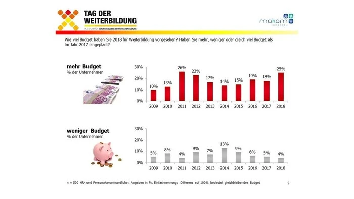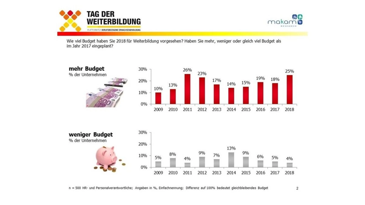 - 25% der Unternehmen haben 2018 mehr Weiterbildungsbudget eingeplant
