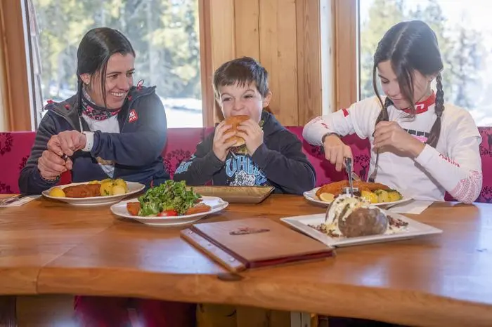 Schön langsam knurren den Dreien ihre Mägen. Gemütliche und urige Skihütten gibt es am Hauser Kaibling zuhauf – dort oben bleibt niemand hungrig oder durstig. Sebastian lässt sich einen leckeren Burger schmecken, Franziska hat Gusto auf ein Schnitzerl mit Erdäpfeln und auch für die Mama steht genau das Richtige auf der Speisekarte. Skischuhe aufmachen, Beine ausschütteln und ein wenig ausrasten – das gibt Kraft für den zweiten Teil des Traumskitagerls. Für Sebastian geht es danach noch zum Training, Franziska ist bei einer Geburtstagsparty eingeladen – und die Mama wird gemütlich die Beine hochlagern. Ja, so muss ein Traumtagerl mit Skifahren auf dem Hauser Kaibling aussehen!