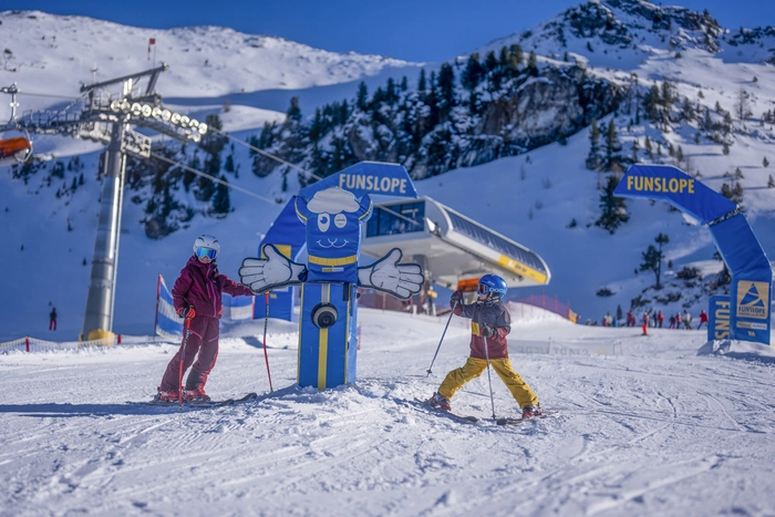 Franziska und Sebastian sind dem Kids Park schon längst entwachsen – die beiden ziehen schon auf den „normalen“ Pisten ihre Schwünge. Schon seit der Abfahrt von ihrem Zuhause haben sie sich ganz besonders auf das Highlight auf dem Hauser Kaibling gefreut – auf die Funslope. Schon auf der Bergfahrt mit dem Alm-6er-Sessellift sieht man auf die rund 1460 Meter lange Strecke runter, die sich fast wie eine endlose Schlange auf der Piste nach unten schlängelt. Auf dieser Funslope in XXL-Größe kann man sich so richtig austoben: Steilkurven, Bodenwellen, Tunnel, ein Schneehaus mit Durchfahrt und Hindernisse sorgen für Mega-Spaß und neue Herausforderungen. Und wer wissen will, wie schnell er/sie unterwegs ist – auch die Polizei, der Slope Cop - ist mit einer Radarmessung vor Ort!