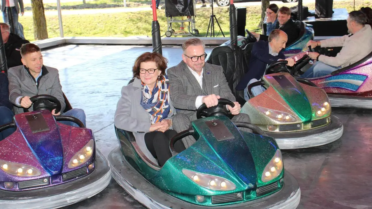 Die Leistungsschau Lipizzanerheimat wurde bereits traditionell mit einer Autodromfahrt der Ehrengäste eröffnet (am Foto Rosentals Bürgermeister Johannes Schmid und Stellvertreterin Martina Weixler)