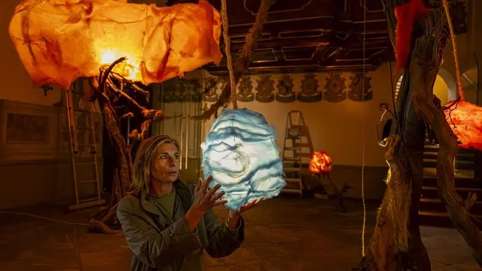 Susanne Kubelka und Nežika A. Novak treten mit Kunstwerken aus Baumfragmenten, Wolle, Seide, Keramik und Klang in einen Dialog mit der Burgkapelle des Museums Moderner Kunst Kärnten.