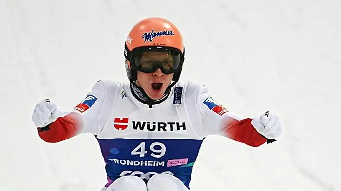 Jan Hörl hat am Samstag bei der WM in Trondheim nach einem skandalträchtigen Großschanzenbewerb Silber erhalten. Der Salzburger wurde aufgrund der Disqualifikation des Norwegers Marius Lindvik zum Vizeweltmeister gekürt. Gold holte überlegen der Slowene Domen Prevc. Bronze ging letztlich an den Japaner Ryoyu Kobayashi. Maximilian Ortner kam auf Rang sechs. Enttäuscht waren Weltcupleader Daniel Tschofenig als Neunter und Ex-Weltmeister Stefan Kraft als Zwölfter.