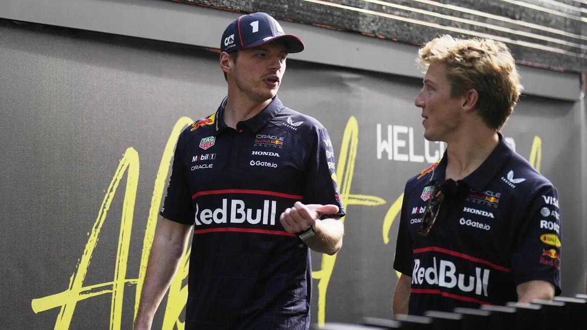 Max Verstappen mit seinem Ex-Teamkollegen Liam Lawson