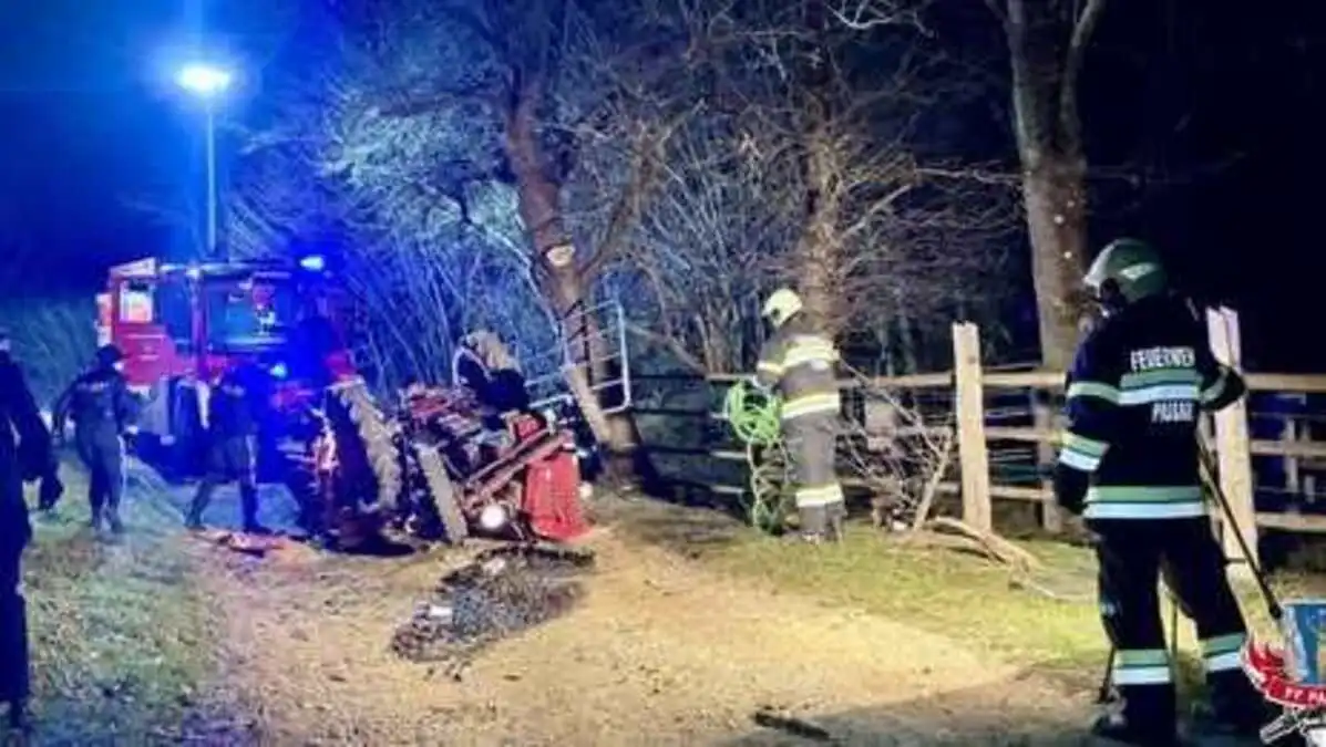 Unfall am Samstagabend im Bezirk Weiz: Bei Arbeiten auf einem Forstweg kippte ein Traktor um, der 55-jährige Lenker wurde eingeklemmt.