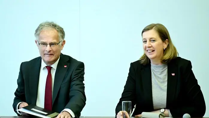 Finanzminister Markus Marterbauer (SPÖ) und Staatssekretärin Barbara Eibinger-Miedl (ÖVP)
