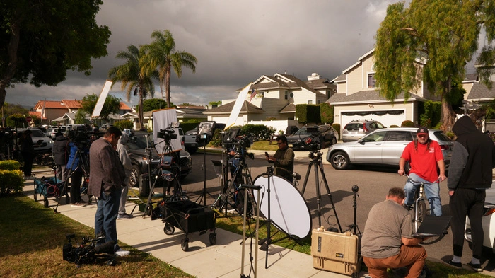 Medien vor einem Haus, das Cole Tomas Allen zugeordnet wird