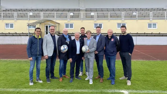 Vertreter des Steirischen Fußballverbands, der Stadtgemeinde Feldbach und des LAZ Weiz freuen sich auf das erste Sichtungstraining in Feldbach am 20. Mai