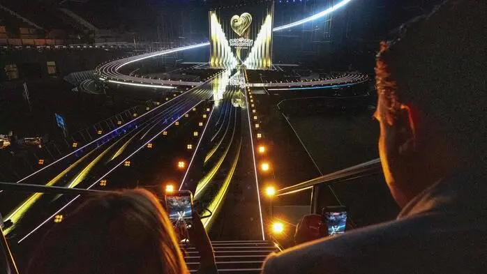 Gab es eigentlich eine Idee für diese beeindruckende Bühne, die sich nicht verwirklichen ließ? „Durch die großartige Unterstützung des ORF konnten wir alle Visionen umsetzen“, streut Wieder den österreichischen Gastgebern Rosen. Noch gut in Erinnerung ist den Zuschauern seine imposante Gestaltung des ESC in Basel 2025. „Basel hatte einen komplett anderen kreativen Ansatz. Die Inspiration waren die Schweizer Berge und das Schweizer Sackmesser als grafische Inspiration. Hier in Wien haben wir uns, wie gesagt, von der Kunst und der Wiener Secession beflügeln lassen. Die Wiener Secession war eine Bewegung, in der Kunst neu definiert wurde. Es war damals wie ein Reset, ein mutiger, künstlerischer Neuanfang. Das hat uns zutiefst inspiriert“, konkretisiert er.