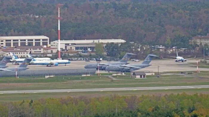 Drei amerikanische Boeings stehen am US-Stützpunkt Ramstein