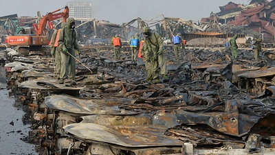 Nach der Explosion eines Chemielagers in der chinesischen Hafenstadt Tianjin wurden im Wasser der Umgebung dramatisch hohe Mengen von hochgiftigen Zyaniden gefunden - zum Teil das 277-fache der erlaubten Menge.