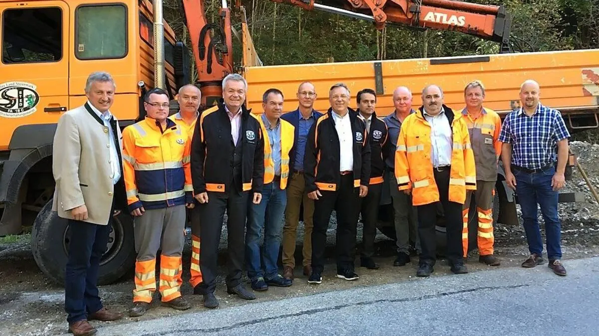 Verkehrslandesrat Anton Lang besuchte Gasen, wo der Straßenerhaltungsdienst gerade dabei ist, die vom Unwetter in Mitleidenschaft gezogene L104 zu sanieren. Bis November sollen die Arbeiten abgeschlossen sein.