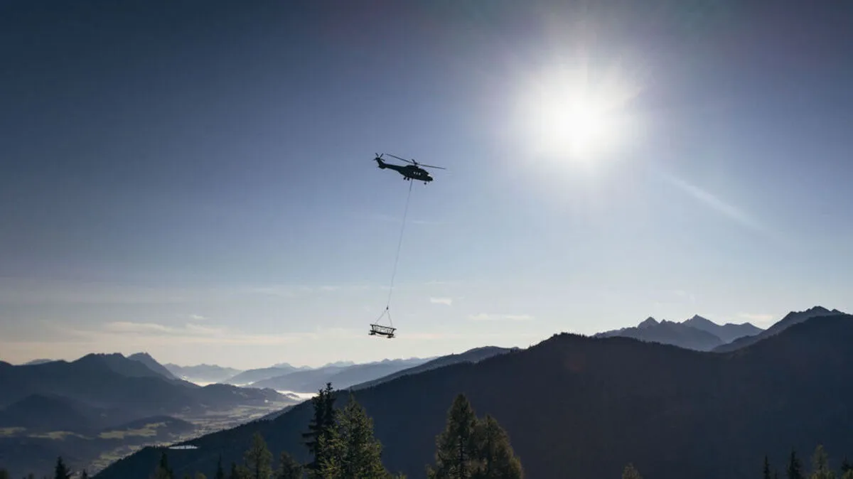 Per Spezialhubschrauber wurden die neun Stützen auf die Reiteralm geflogen