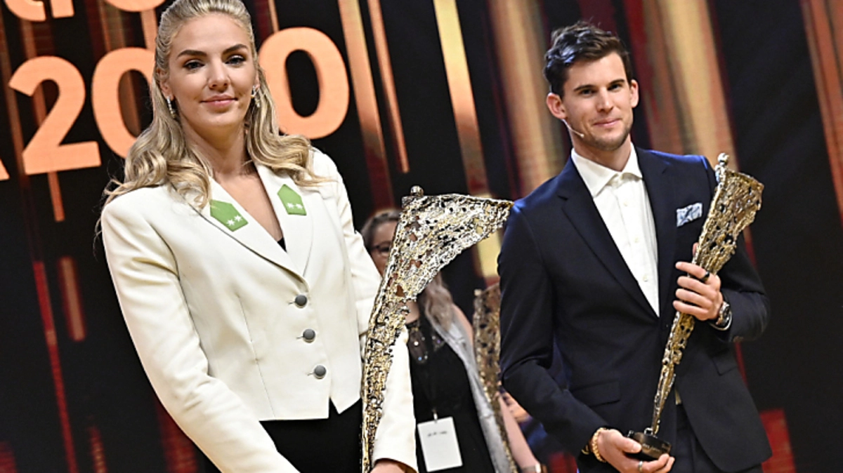 Jedes Jahr werden die besten Sportlervon Österreich geehrt.Am Dienstag-Abend war es wieder soweit.Der Tennis-Spieler Dominc Thiem wurde beiden Männern bester Sportler des Jahres.Bei den Frauen gewann dieLeichtathletin Ivona Dadic den Preis.Thiem und Dadic gewannen beidezum ersten Mal.