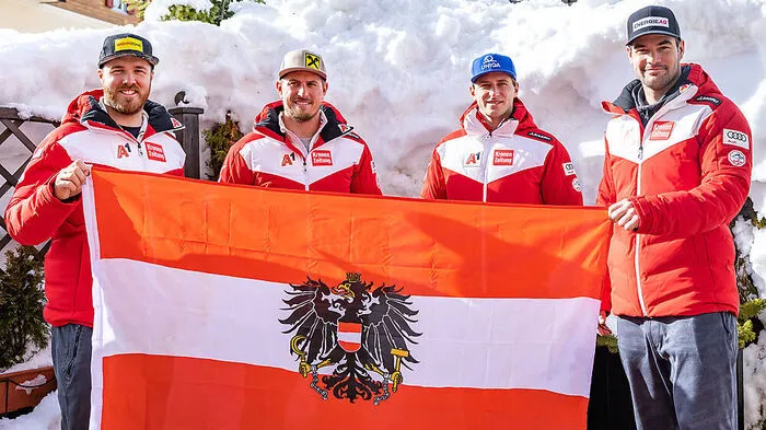 Das ÖSV-Super-G-Quartett: Christian Walder, Max Franz, Matthias Mayer, Vincent Kriechmayr (von links)