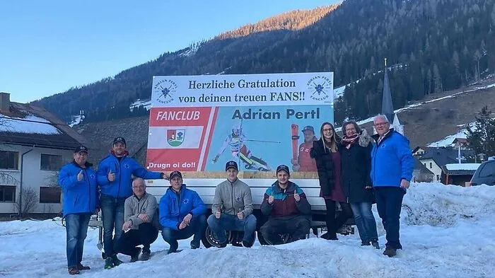 Das ganze Dorf hielt den Atem an. Nur im engsten Kreis wurde während Adrian Pertls WM-Silberfahrt mitgefiebert. Der Fanclub setzte ihn gelungen in Szene.