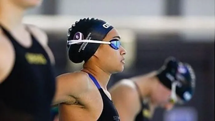 Alice Dearing vertritt Großbritannien bei den Olympischen Spielen als erste dunkelhäutige Schwimmerin. Sie trägt eine "Soul Cap".