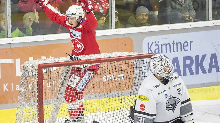 Wieder kein Dreier für die Klagenfurter. Nach 0:1 drehten sie auf 3:1. Doch Dornbirn gelang auf Einladung der Rotjacken noch der Ausgleich. KAC-Verteidiger Clemens Unterweger sorgte für das entscheidende Tor.