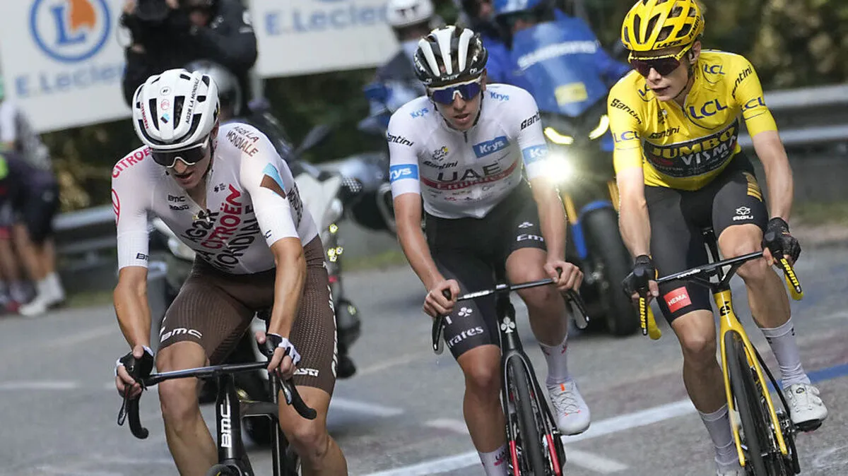 Felix Gall, Tadej Pogačar und Jonas Vingegaard (von links)