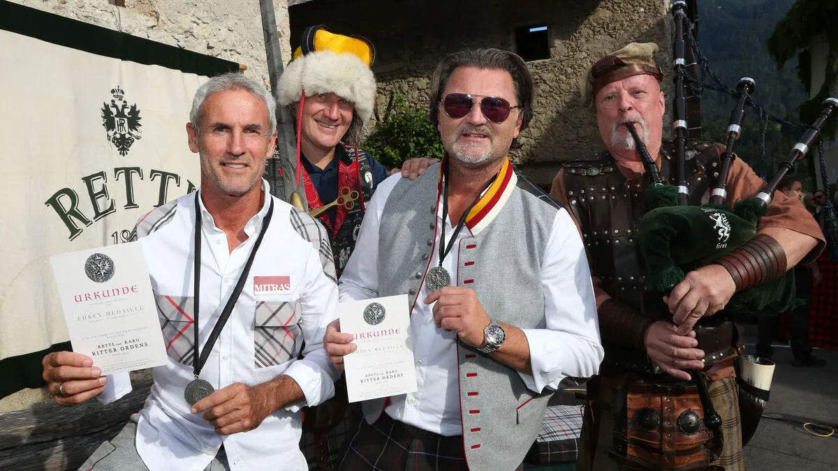 Weltmeisterin Nici Schmidhofer und Ex-Fußballer Michael Konsel präsentierten am Freitag beim Romantikkirchtag auf der Burgruine Finkenstein die neue Rettl-Kollektion.