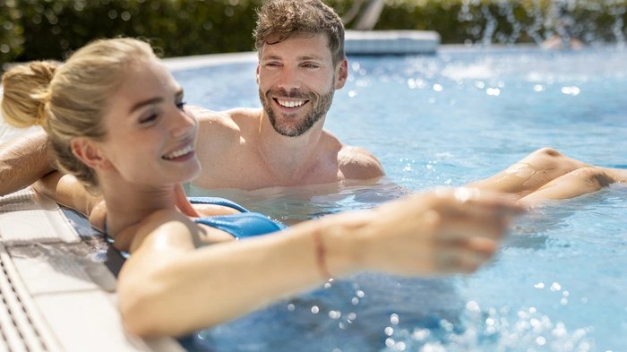 In der direkt angeschlossenen Parktherme Bad Radkersburg erwarten Sie 2.700 m² voller Entspannung: wohlig warmes Thermalwasser, ein 50-Meter-Outdoor-Sportbecken, ein großzügiges Saunadorf, weitläufige Parklandschaften und viele ruhige Ecken zum Abschalten. Ob aktiv im Wasser, beim Schwimmen oder entspannt auf der Liege unter der Sommersonne – hier spüren Sie sofort pure Erholung.