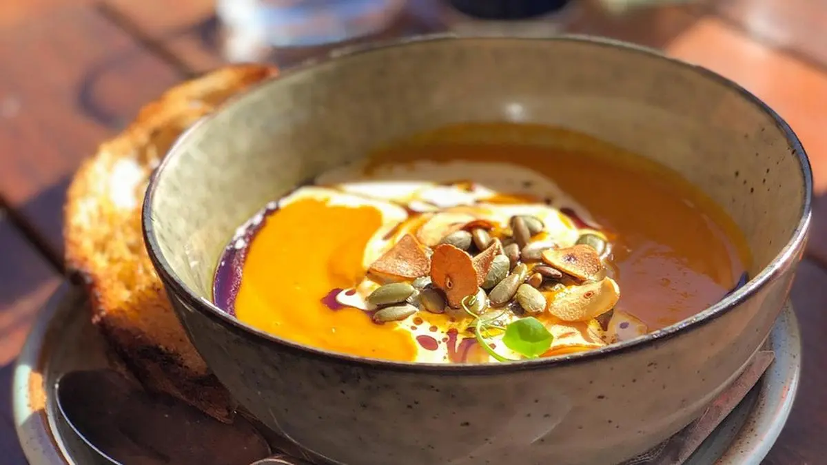- Sauerrahm glatt rühren. Suppe anrichten. Auf jeden Teller Suppe 1 EL Sauerrahm setzen, die gerösteten Weißbrotwürfel auf der Suppe verteilen und mit ein paar Tropfen Kürbiskernöl beträufeln.