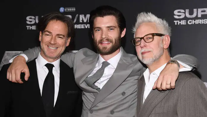 Peter Safran, David Corenswet (spielt den neuen Superman) und James Gunn
