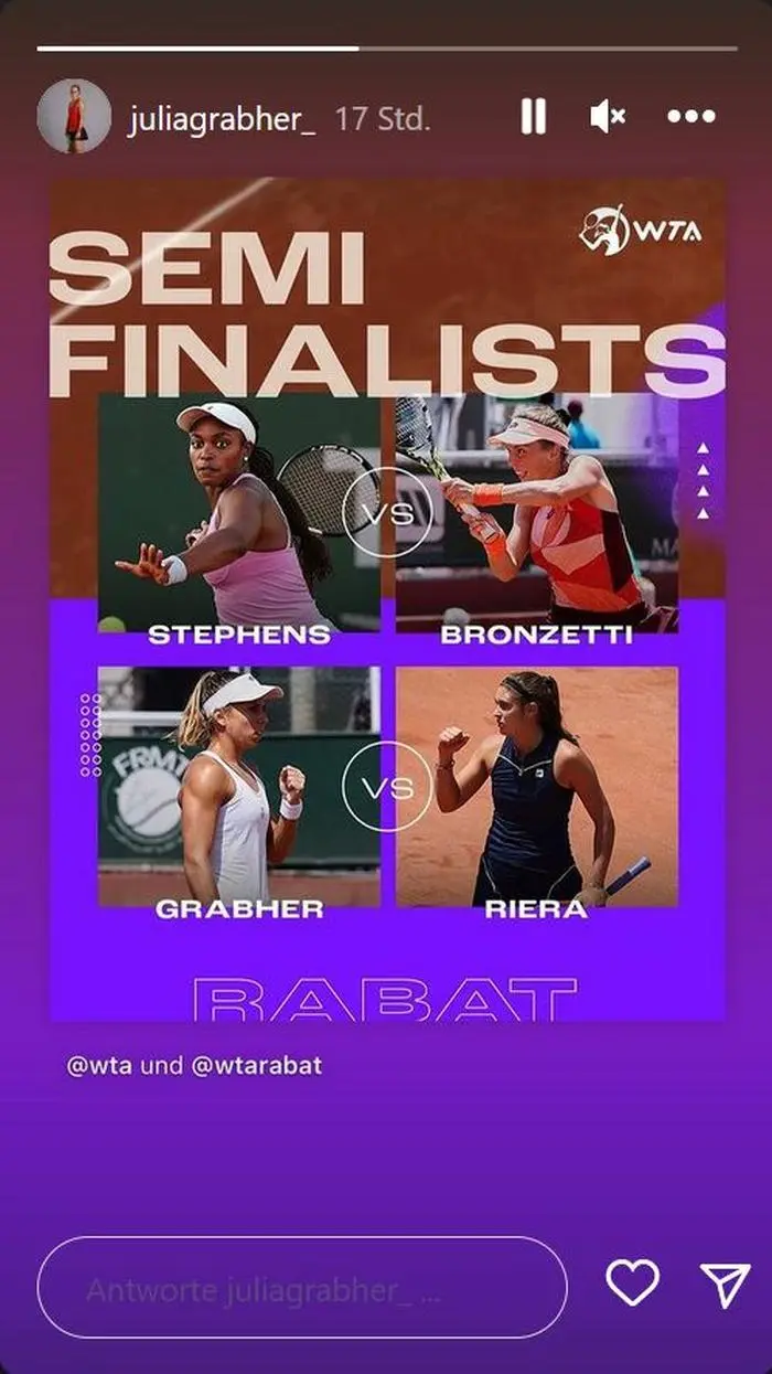 Der Schützling von Günter Bresnik trifft am Samstag im Endspiel auf die Italienerin Lucia Bronzetti. Grabher hat bereits 180 WTA-Punkte sowie ein Brutto-Preisgeld von 20.226 Dollar sicher. Im Live-Ranking kletterte sie erstmals in die Top 60.