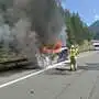 Fahrzeuge auf A10 in Flammen