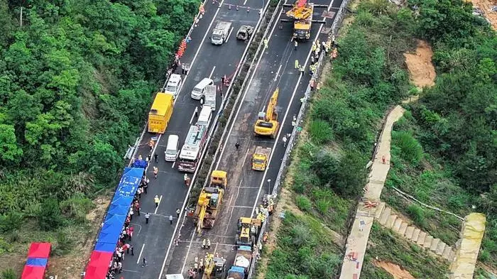 Nach dem Einsturz einer Fahrbahn auf einer Autobahn in Südchina ist die Zahl der Todesopfer auf mindestens 48 gestiegen. Das berichtete die amtliche Nachrichtenagentur Xinhua am Donnerstag. Die Zahl der bestätigten Opfer dürfte weiter zunehmen: So sei die DNA von drei Personen noch nicht identifiziert worden.