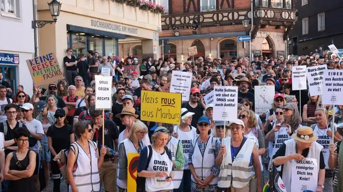 Zu einer Kundgebung am Abend, zu der die Stadt Marburg und das Netzwerk für Demokratie und gegen Rechtsextremismus aufgerufen hatten, kamen nach Angaben der Polizei rund 2.500 Menschen. Eine Stadtsprecherin sprach von mehr als 3.000 Menschen.