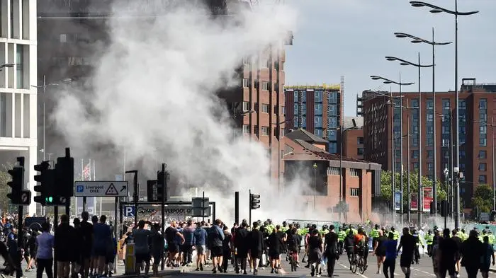 In Liverpool stellten sich Gegendemonstranten schützend um eine Moschee. Eine ältere Frau hielt ein Plakat mit der Aufschrift „Nans against Nazis“ (Omas gegen Nazis). Hier war die Lage angespannt, es blieb aber weitgehend ruhig.