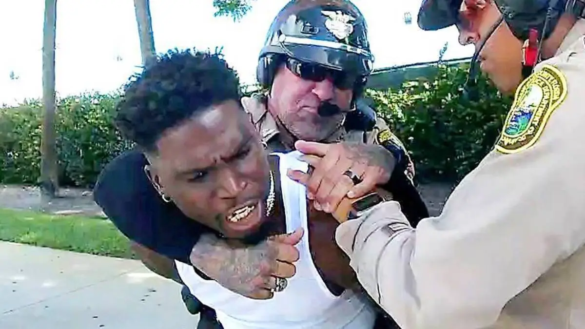 Eine gewöhnliche Verkehrskontrolle endet damit, dass Polizisten den Football-Spieler zu Boden drücken. Der Polizei wird rassistisch motivierte Gewalt vorgeworfen.