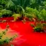 Blutrotes Wasser flutet Wohngebiet in Malaysia
