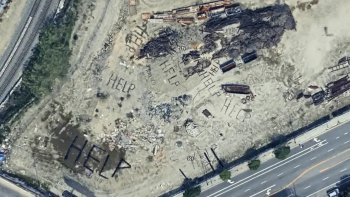 Auf einem Grundstück in Los Angeles sind Wörter wie Help (Hilfe), Traffico (Menschenhandel) oder auch FBI zu sehen. Damit wurden Gerüchte auf Social Media angeheizt.
