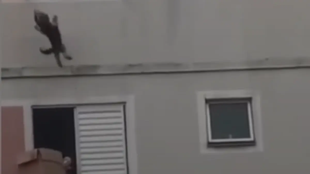 Der kleine Vierbeiner klammerte sich davor noch verzweifelt an den Fensterladen. Die Nachbarn fieberten mit, eine Frau reagierte geistesgegenwärtig.
