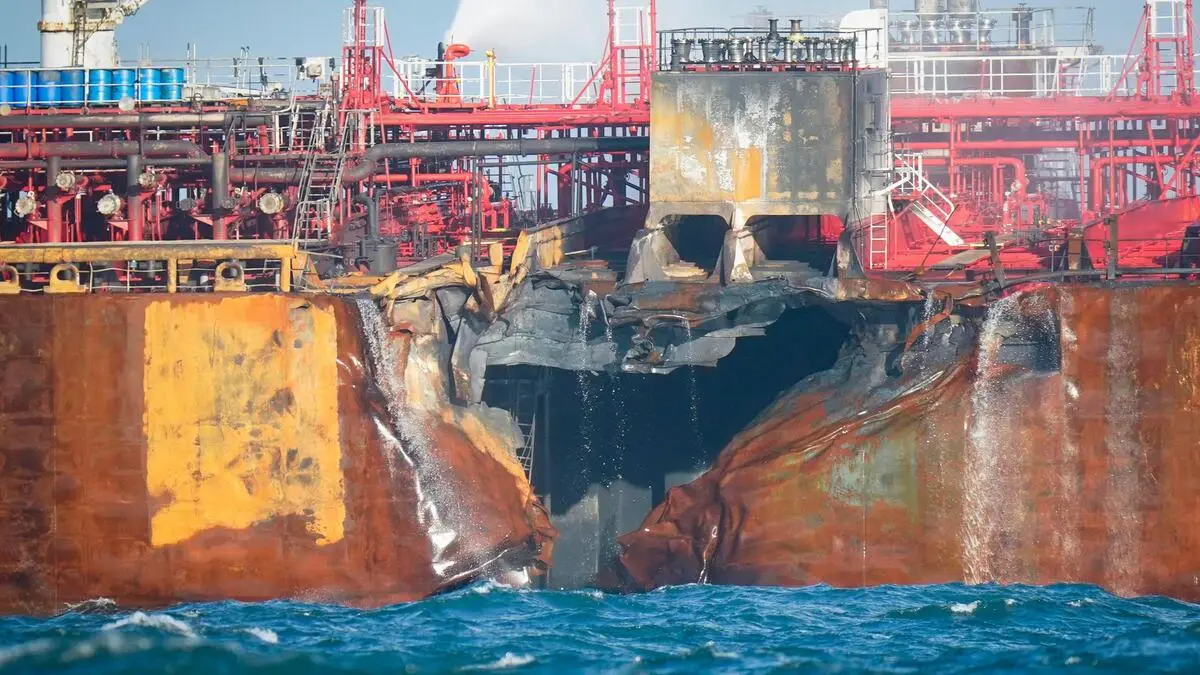 Die beiden Schiffe sind Anfang der Woche ineinander gekracht, das Feuer konnte gelöscht werden. Eine Person gilt immer noch als vermisst. Neue Aufnahmen zeigen den Moment des Zusammenpralls.