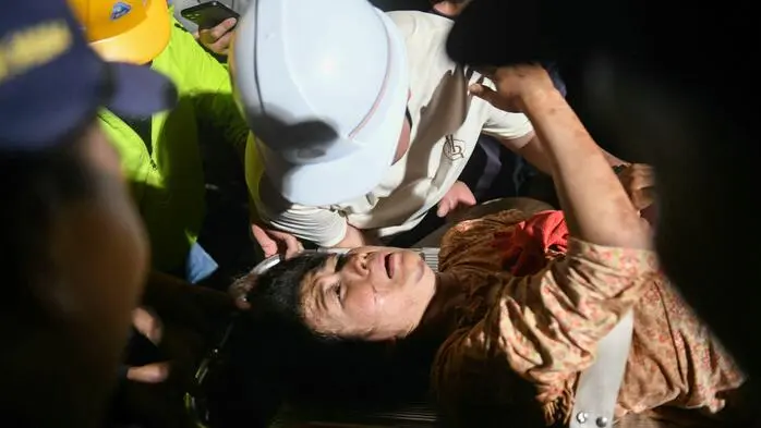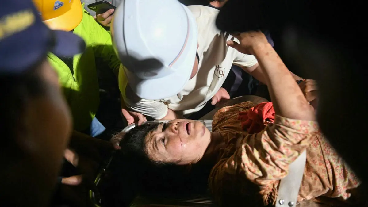 30 Stunden nach dem verheerenden Erdbeben in Myanmar haben Rettungskräfte eine Frau lebend aus den Trümmern eines Wohnhauses geborgen.