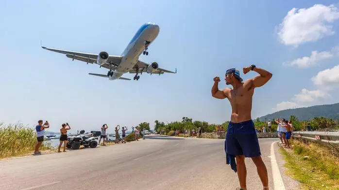 Auf der griechischen Insel lassen sich Starts und Landungen von Flugzeugen aus nächster Nähe mitverfolgen. Dabei kommt es immer wieder zu brenzligen Situationen.